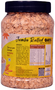 Nutri Junction Jumbo Rolled Oats are high-fibre, protein-rich wholegrain oats that cook in minutes for a clean, wholesome, and energizing meal.